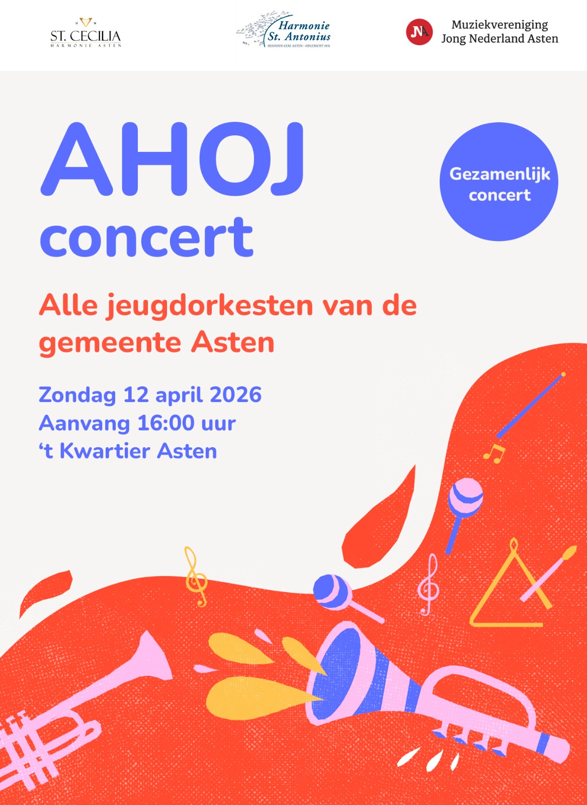 Zondag 12 april AHOJ Gezamelijk concert van alle jeugdorkesten